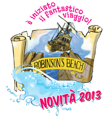 Robinson’s Beach: attrazione del 2013 del Parco Cavour, una grande scenografia del relitto di una nave su un’isola rocciosa con palme e da esplorare passando per il ponte tibetano e scendendo con uno scivolo tortuoso per arrivare nella laguna sottostante